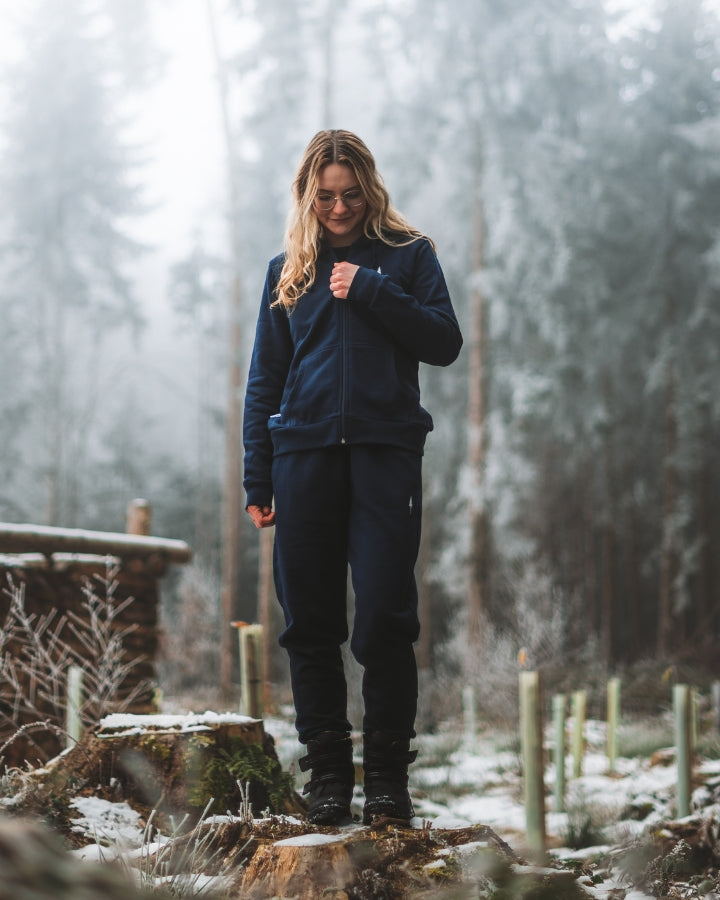 The TreePants Jogging in Dark Navy are the ideal feel-good pants for Women and men. These sustainable cotton trousers are made from 100% organic cotton, are GOTS-certified and offer a soft feel and optimum freedom of movement. With their loose fit, elasticated waistband and practical side pockets, they are perfect for everyday wear, sport or cosy hours at home. The dark blue color makes them a versatile must-have for any wardrobe.