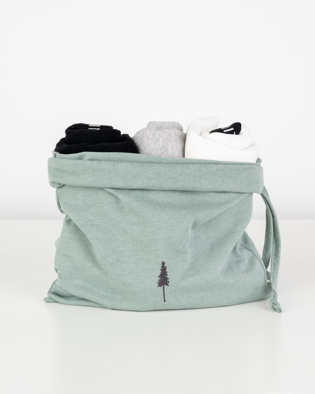 Our TreeTrunks are produced fairly and sustainably. The set of three simple, close-fitting trunks is packed in a bag made from old TreeShirts that you can use again and again!