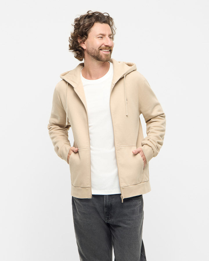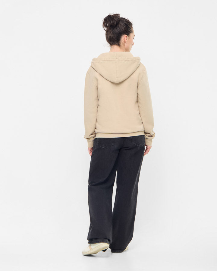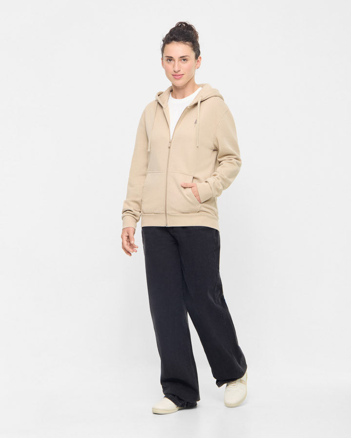 The TreeHoodie Jacket in Light Taupe is a versatile hooded jacket for every day - comfortable, timeless and sustainable. Made from 100% organic cotton, this GOTS-certified cotton hoodie is soft to wear and boasts a high-quality finish. The full-length zipper, adjustable hood and practical kangaroo pocket make it a functional everyday companion. Produced fairly in Europe, this jacket combines minimalist design with responsible consumption - perfect for anyone who values comfort and sustainability.