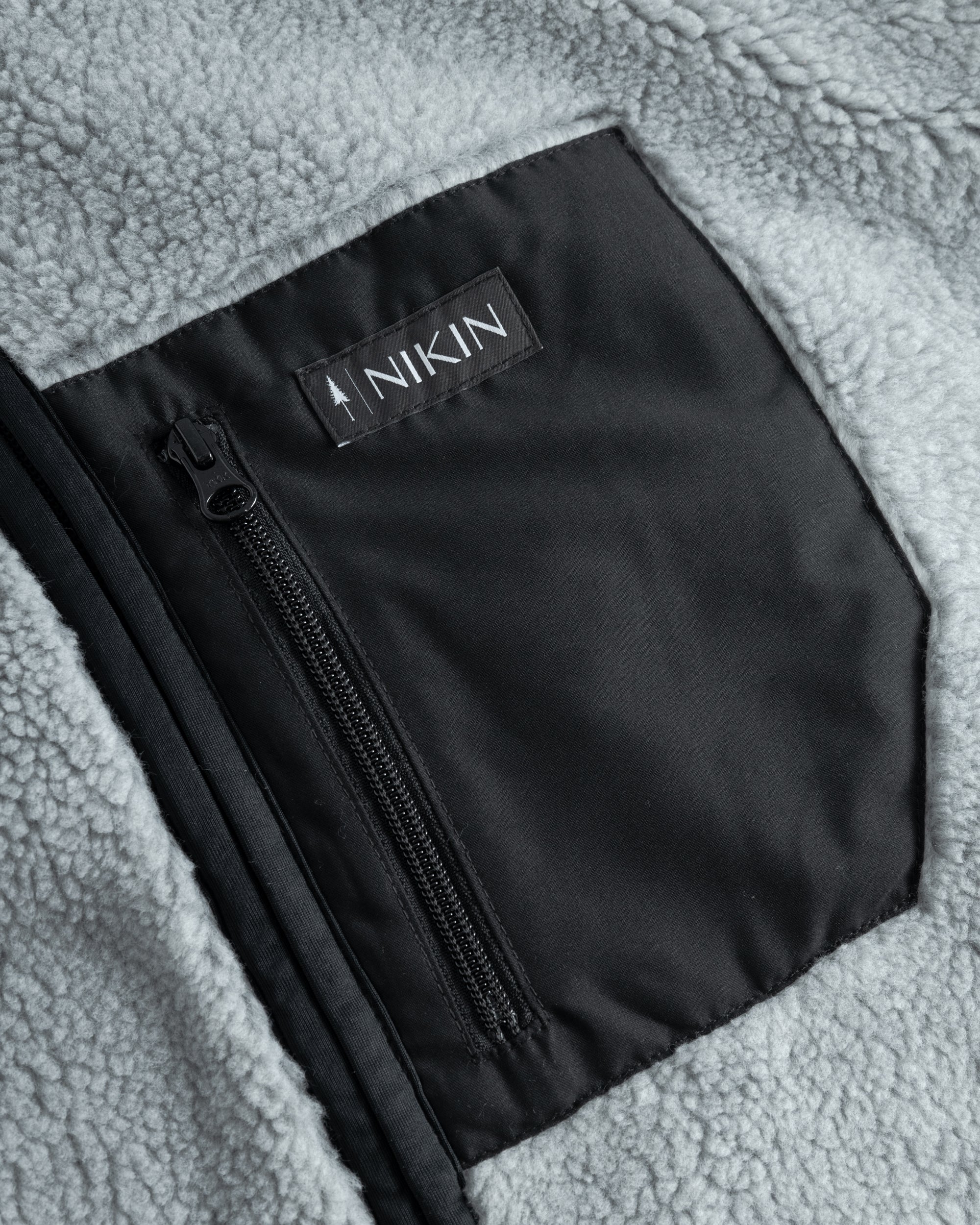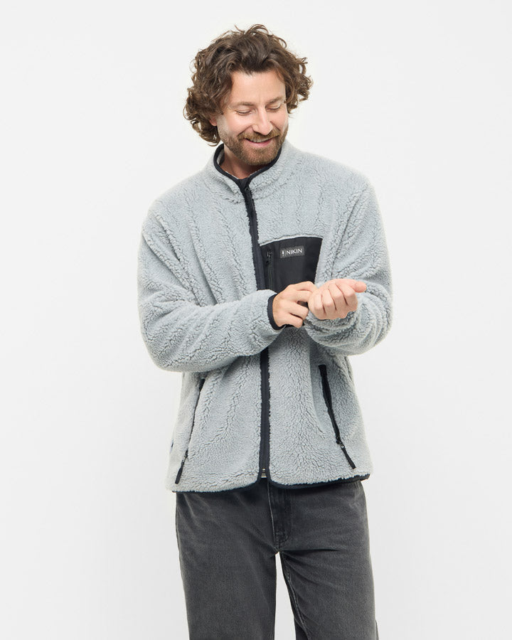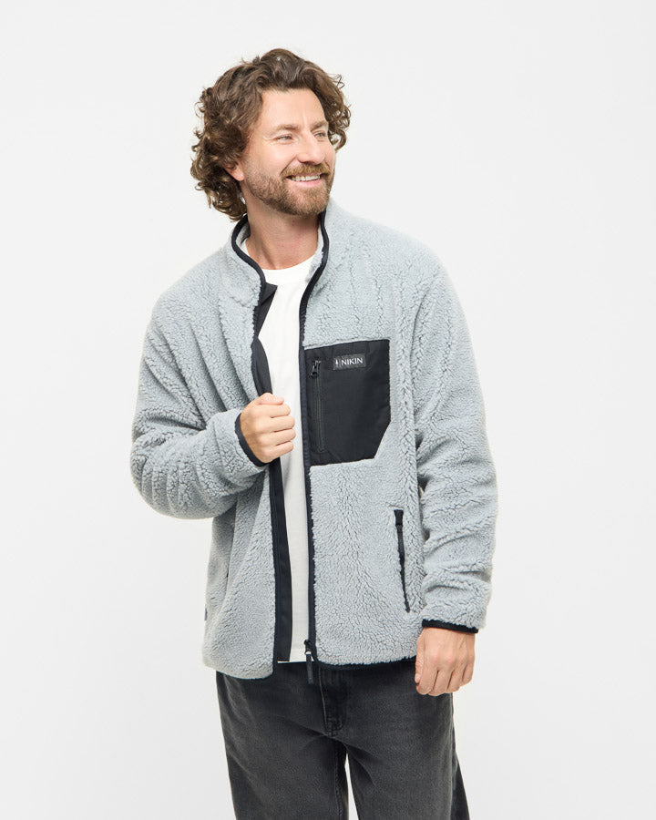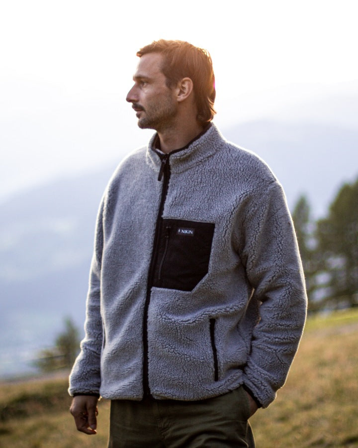 The TreeFleece Teddy Relaxed Jacket in Grey Mel is a warm teddy jacket made from sustainable recycled polyester - perfect for cold days with style and function. The light grey underlines the cozy look, while the dense material keeps you nice and warm. Two practical side pockets and a zipped chest pocket provide secure storage space, while the adjustable hem ensures a customizable fit. The loose cut offers freedom of movement and makes the jacket a versatile companion - soft, comfortable and sustainably produced in Europe.