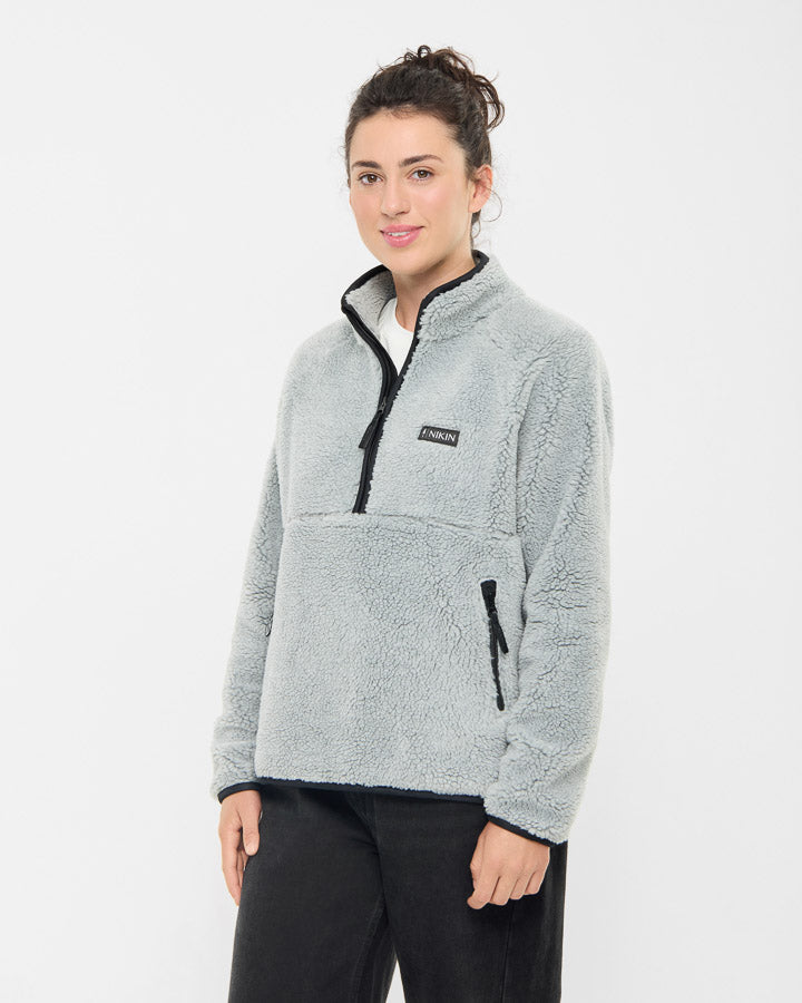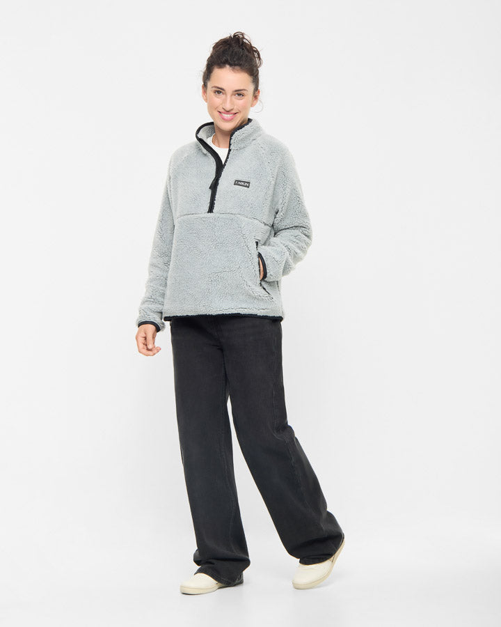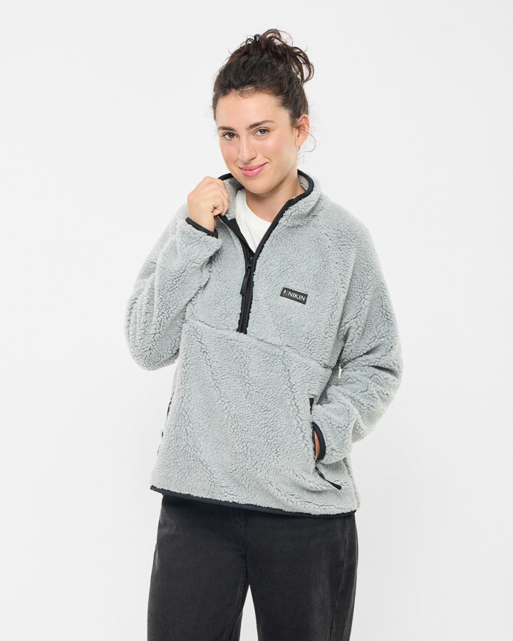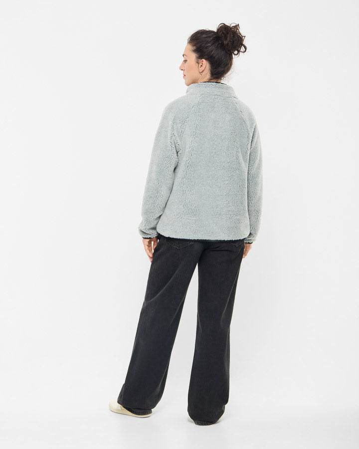 The TreeFleece Pullover Teddy Women in Grey Mel combines cozy warmth with a versatile design - perfect for wearing as a pullover or lightweight jacket. The fluffy material made from sustainable recycled polyester keeps you nice and warm and feels soft against the skin. The half-length zip makes it easy to regulate the temperature, while the zipped pockets keep your essentials safe. The adjustable hem ensures a custom fit - ideal for relaxed days out and about.