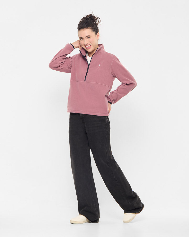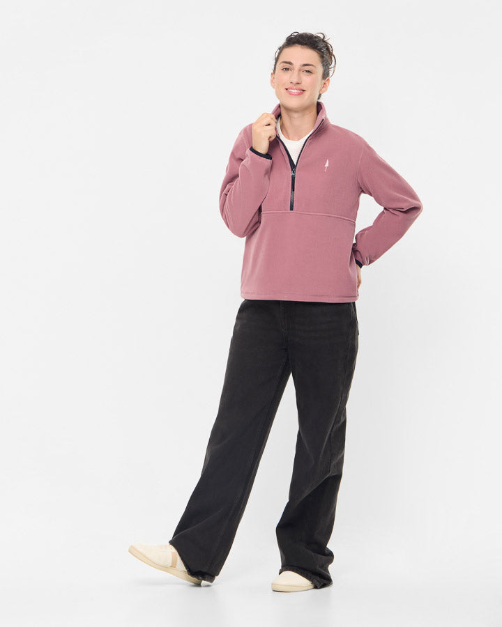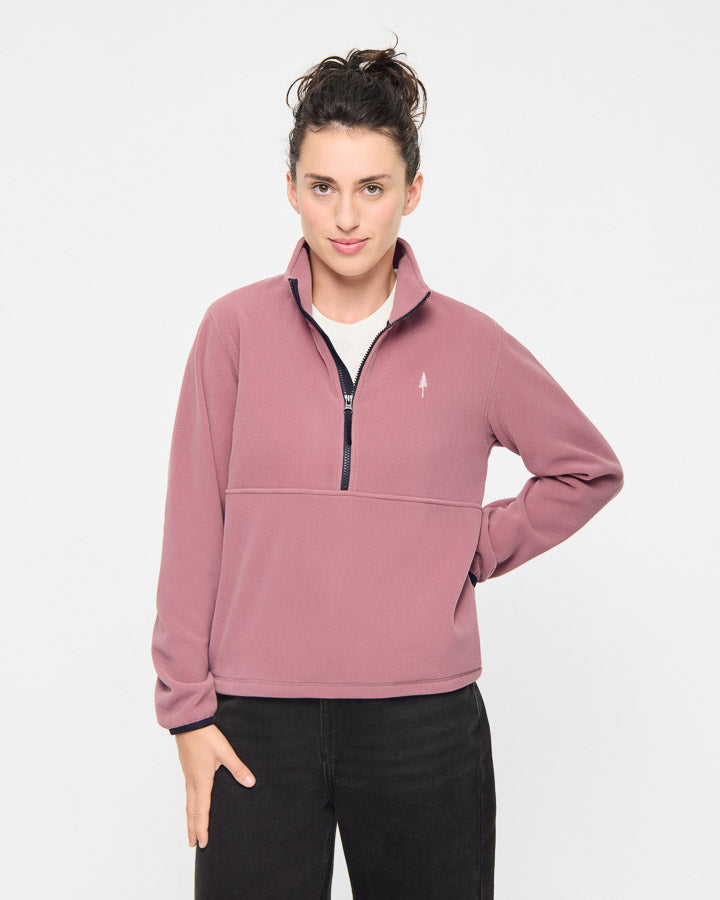The TreeFleece Quarter Zip in Astrodust combines timeless design with functional warmth. The dense fleece material made from high-quality recycled polyester provides pleasant insulation on cool days, while remaining lightweight and soft on the skin thanks to the roughened inside. The practical zip makes it easy to regulate the temperature - perfect for traveling, outdoor activities or everyday wear. The loose cut offers comfort and freedom of movement, while the sustainable production supports your conscious lifestyle. A versatile basic for anyone who likes it warm, comfortable and responsible.