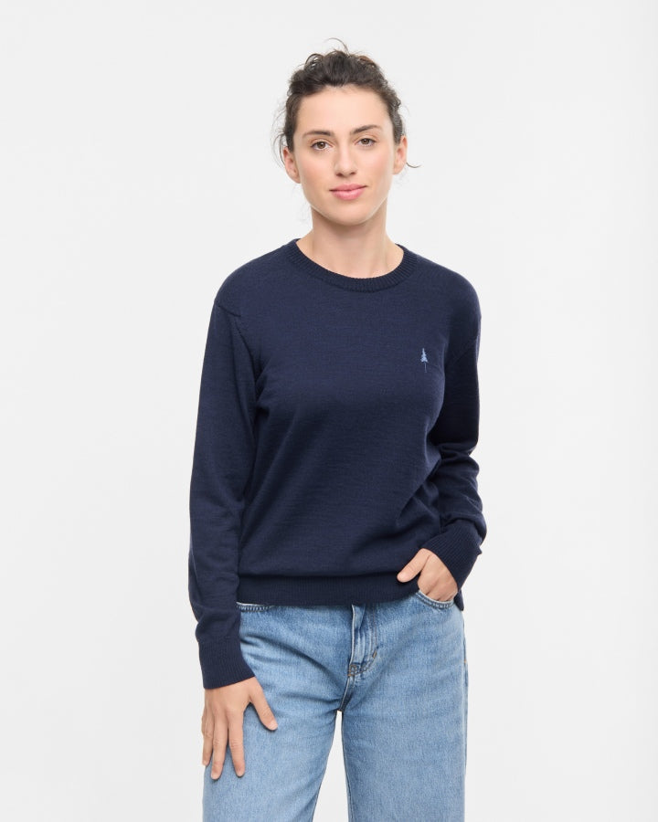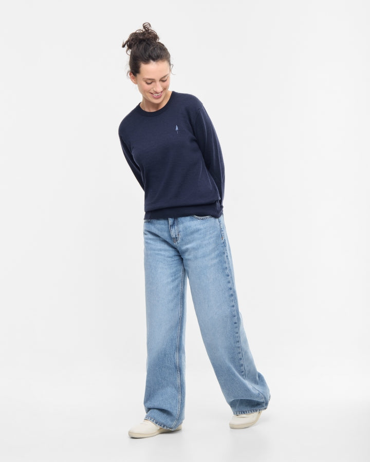 The TreePullover Merino Wool Dark Navy combines pleasant warmth with simple style - ideal for cool days and versatile looks. The merino pullover impresses with its soft feel, odour-neutralizing properties and high level of comfort. The fine structure of the wool fiber naturally regulates moisture and temperature, while subtle details such as the tree embroidery on the side ensure the typical NIKIN look. The pre-washed finish ensures a long-lasting fit and prevents shrinkage. Perfect for anyone who appreciates sustainable quality and comfort.