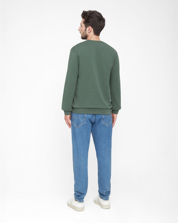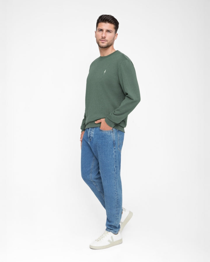 The TreeSweater in Olive Mel combines timeless style with sustainability. This sustainable sweater is made from 100% organic cotton, is GOTS-certified and impresses with its pleasantly soft feel - ideal for everyday wear, leisure time or cosy hours at home. The classic cut and subtle cotton logo make this cotton sweater a versatile piece that is easy to combine. Produced fairly in Europe, this sweater is a statement for conscious consumption and natural comfort.