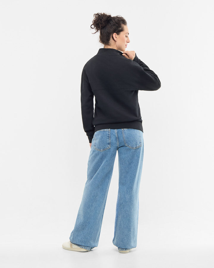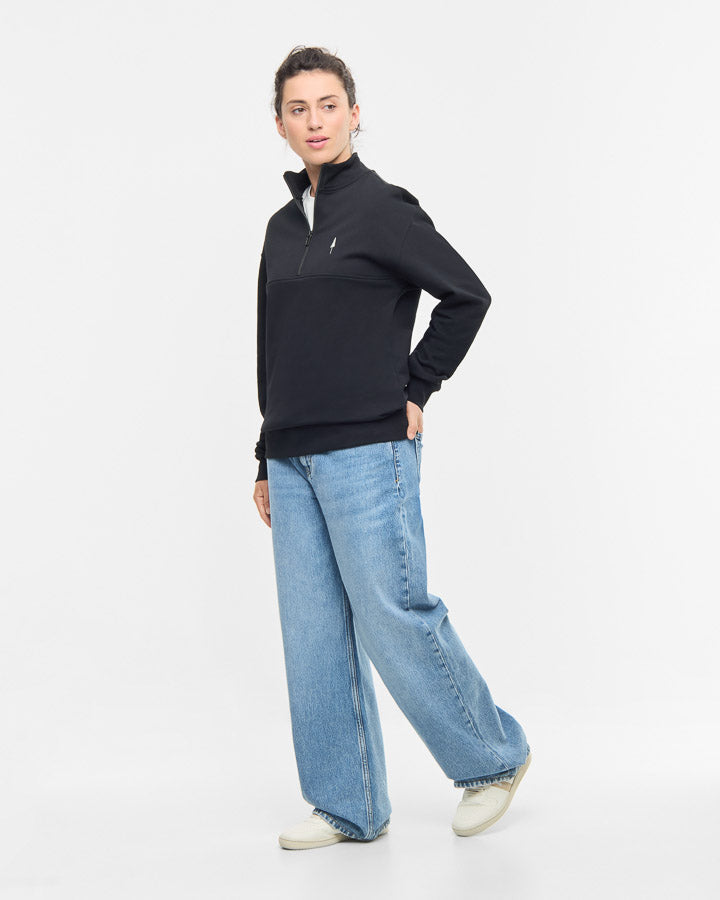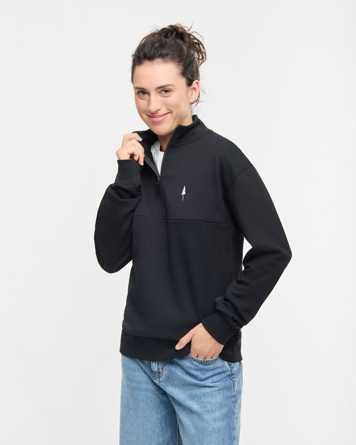Discover the new hero product from the Spring Collection: the TreeSweater Quarter Zip. The midnight blue color ensures an elegant look and goes perfectly with any outfit. With its mock-neck collar and drop-shoulder cut, the TreeSweater Quarter Zip is not only stylish but also super comfortable. The white TreeEmbroidery on the left side is the icing on the cake of this sweater.